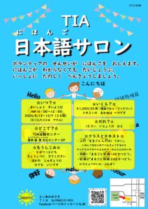 English 中文 Português ワールドツアー in TIA ワールドツアー in TIA 愛・地球博20周年祭”地球大交流フェスタ”出展 とよたSDG’sミライ大学講座"作って食べよう!ブラジルのおかしブリガデイロ" フィリピン・フィエスタ キッズフェスティバル 国際理解セミナー”楽しく学ぼう!世界の食文化” 外国人向けそば打ち体験 英語サロンインド こども国際クラブ ナショナルデータイ インドネシア・インターナショナルフレンドシップデー 若者の国際フォーラム 国際ヨガの日2025 PICK UP イベント【受付中】4/19(日)ニューヨークの”リアル”知っとる?キムさんのNY紹介 募集中【TIAボランティアの皆様ご参加ください!】4/19(日)10:30~ボランティア総会 最新情報 日本語教室【つぎは5/10~】Alpha にほんごきょうしつ 日本語教室【うけつけちゅう 】 にほんごドットJP 「すまいる」 日本語教室【つぎは5がつ13にち~】にほんごサロン TIAについて合併について ボランティア【5月10日開講】帰国子女Englishグループ ボランティア【随時募集中】日本語教室ボランティア 日本語教室【うけつけちゅう 】にほんご ドットJP NEWS お知らせ一覧 2026/02/03 合併公告 2025/12/24 公益財団法人豊田市国際交流協会と公益財団法人豊田市文化振興財団が合併します 2025/06/11 “TIAレポート2024″が完成しました 2024/04/07 Thời gian mở cửa Trung tâm tư vấn đa ngôn ngữ (Đã có tư vấn bằng tiếng việt)