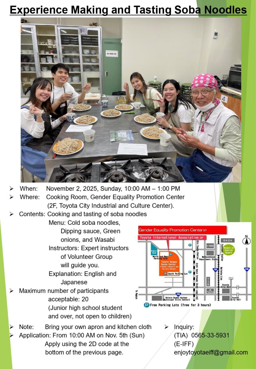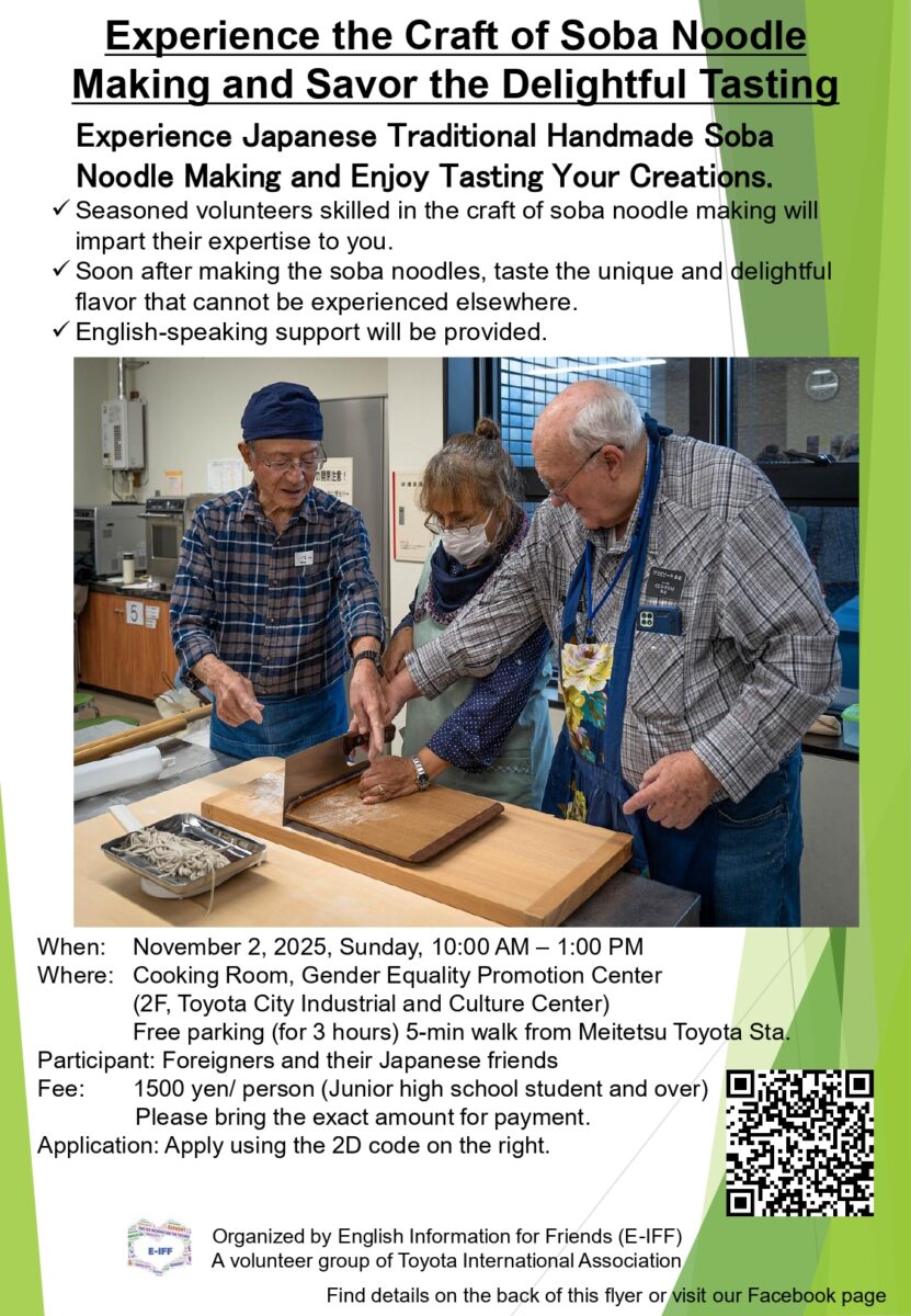 11/2 (Sun) 10:00-13:00 Let’s make and eat Japanese soba noodles!