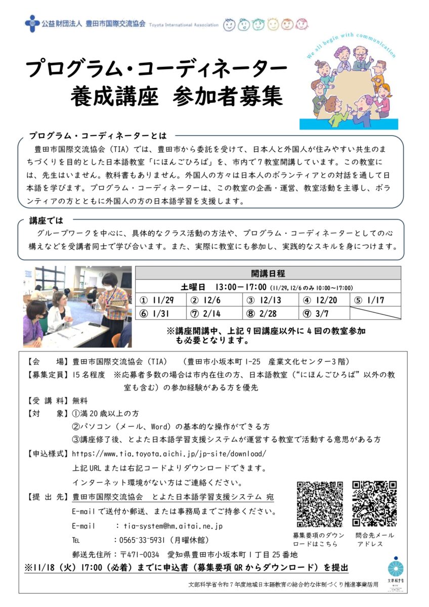 その教室を企画・運営・進行する「プログラム・コーディネーター」の養成講座を開講します。