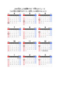 | その他 | 保護者の方に活動の準備・片づけをお手伝いいただきます。(当番制・全9回中1~2回程度) |