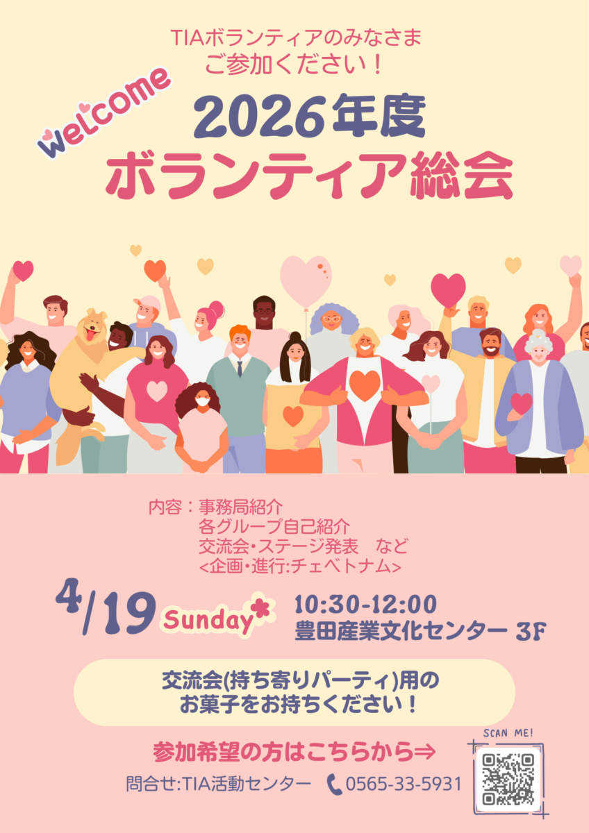 【TIAボランティアの皆様ご参加ください!】4/19(日)10:30~ボランティア総会